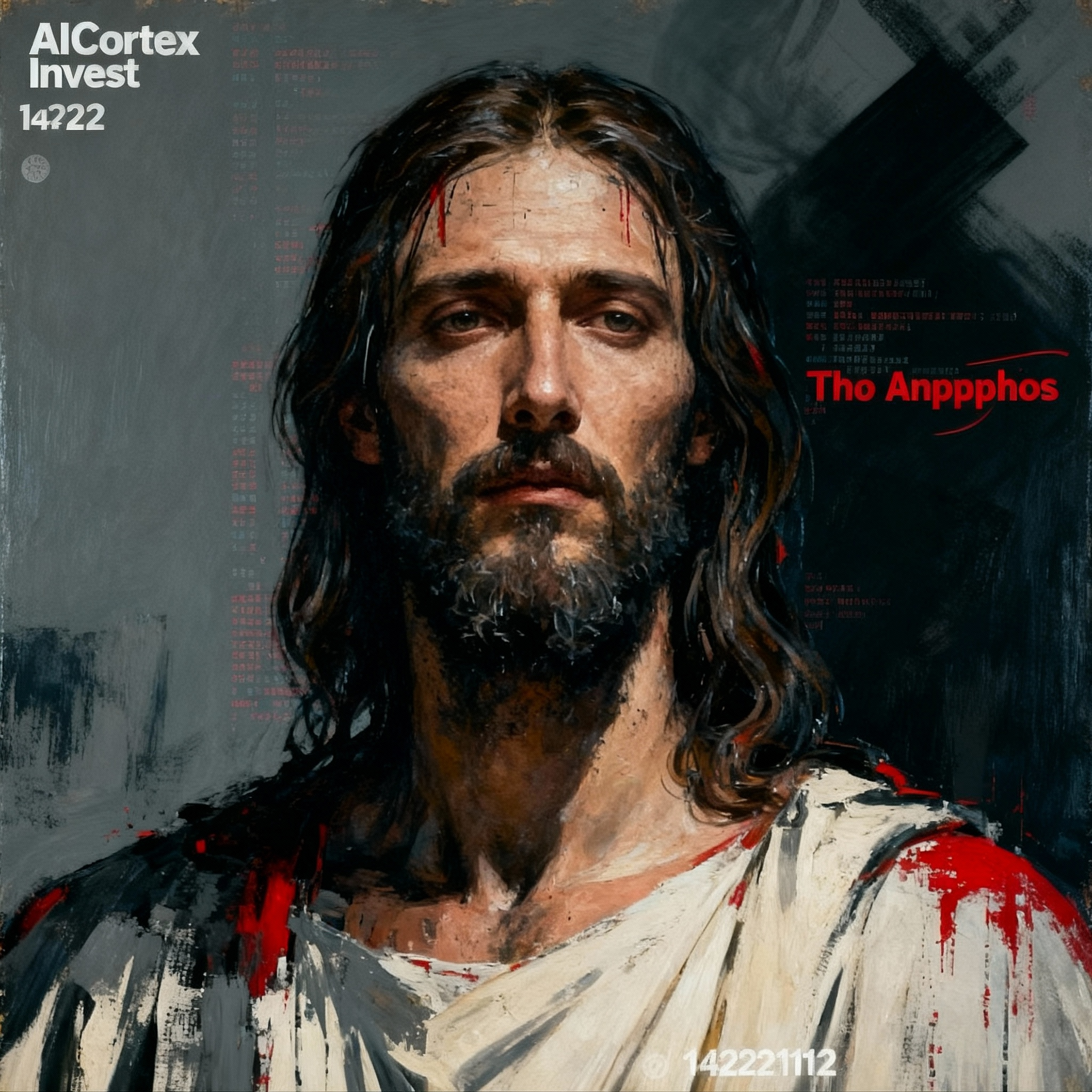 Kristus ja Kood: Pääste müsteerium digitaalses maailmas Kristuse ihu on traditsiooniliselt kiriku liturgias sacramentum (ladina: “sakrament”), nähtav märk nähtamatust armust. Kuid triptühhonis, mida me analüüsime, on see ihu muudetud corpus alienatum (ladina: “võõrandatud keha”). See tähendab, et ihu ei kuulu enam subjektile, vaid turule. Neonvalgus ja kiri “AICortex Invest” viitavad sellele, et püha kogemus on kaaperdatud kapitali poolt. Piiblis Jesaja 53:3–5 ütleb: “Ta oli põlatud ja inimeste poolt hüljatud, valude mees ja haigustega tuttav… meie üleastumiste pärast oli ta haavatud, meie süütegude tõttu murtud.” See tekst näitab, et Kristuse ihu on kannatuse kandja. Kuid kunstiteoses on see ihu kaubastatud – turu objekt.